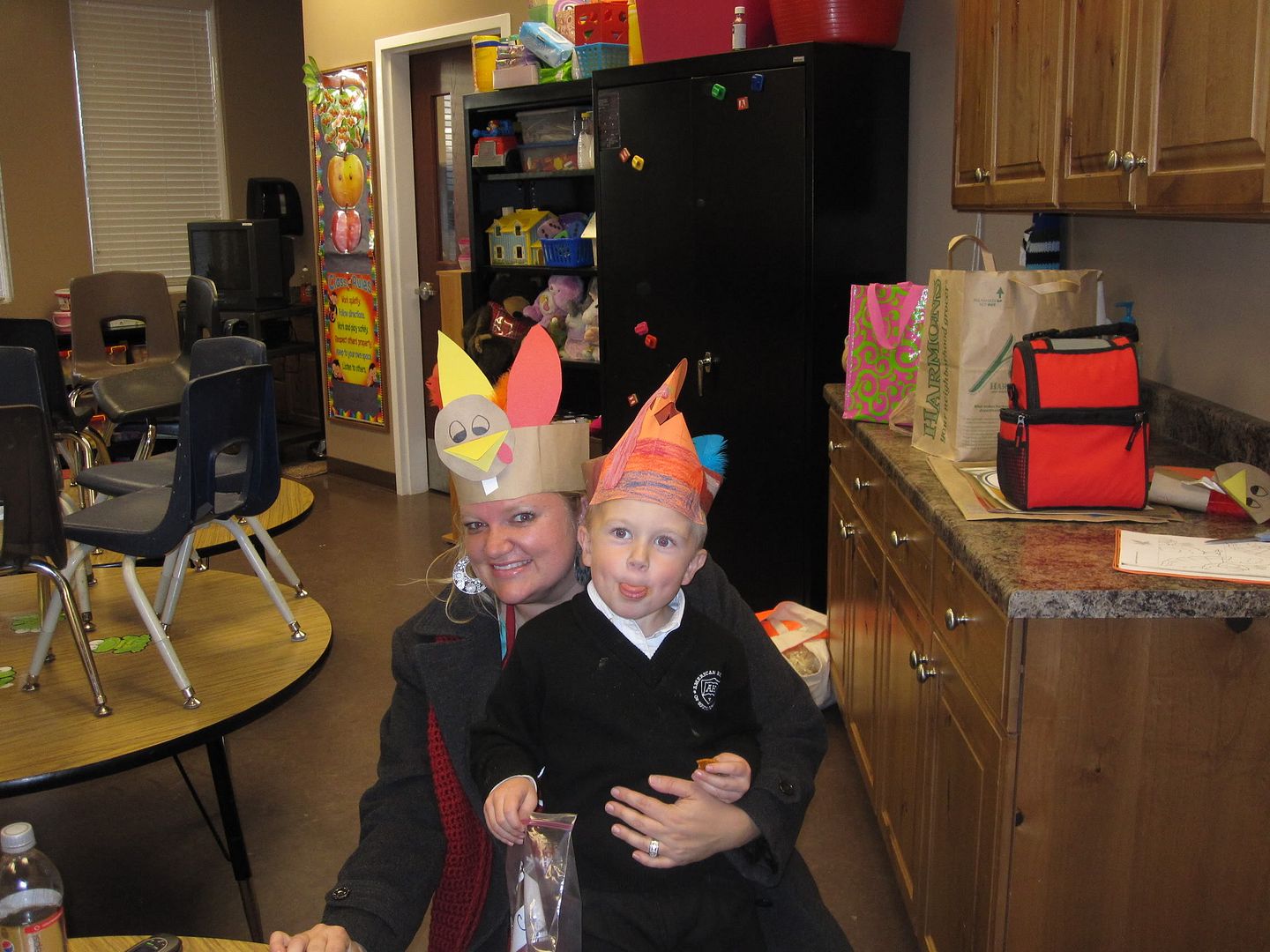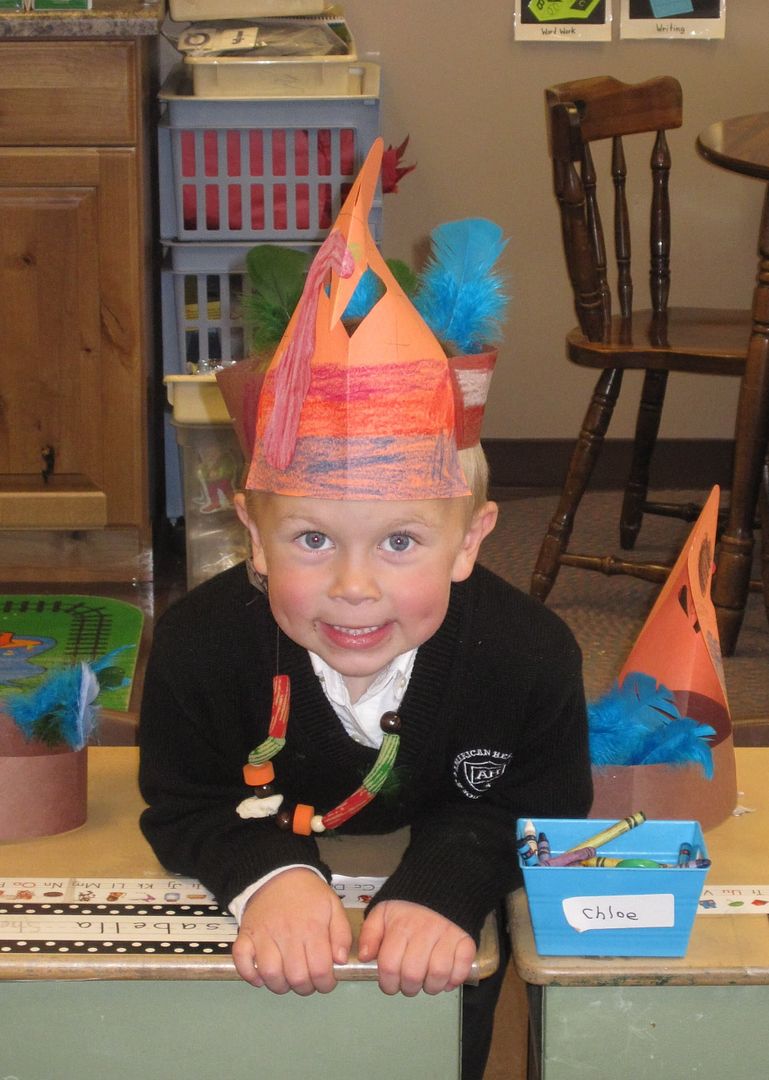 Let's go totally backwards and start with Thanksgiving at school. Cole and I were sporting different (but equally as creative and cute turkey hats).
